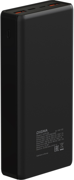 Мобильный аккумулятор Digma DGPF20B 20000mAh QC3.0/PD3.0 22.5W 3A 2xUSB-A/USB-C черный (DGPF20B22PBK) купить в интернет-магазине TPShop.Ru. Наличный и безналичный расчет, розничные и оптовые продажи. Самовывоз, доставка по Москве и МО, отправка во все регионы России.