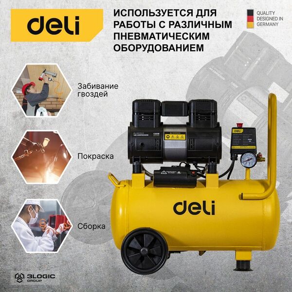 Компрессор воздушный безмаслянный Deli DL-WKY25-E1 (мощность 1,2кВт, 25литров, 80л/мин, 7атм, 2800об/мин) купить в интернет-магазине TPShop.Ru. Наличный и безналичный расчет, розничные и оптовые продажи. Самовывоз, доставка по Москве и МО, отправка во все регионы России.