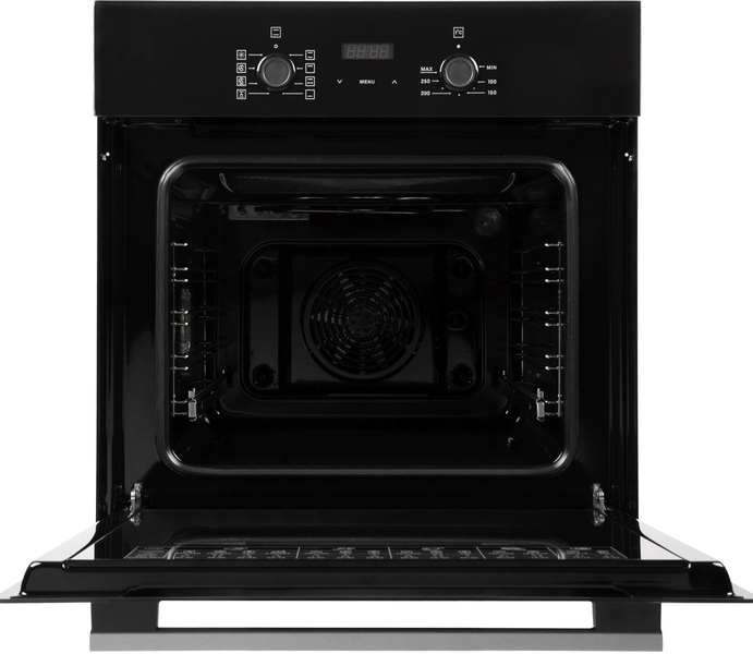 Духовой шкаф встраиваемый полноразмерный, 60 см, 9 режимов, объем духовки 70л, утапливаемые переключатели, большой дисплей Snow White, хромированные боковые решетки, телескопические направляющие 1 уровнь, панель управления - белое стекло, универсальный противень, решетка-гриль, тройное стекло дверцы, легко-съемное большое внутреннее стекло Full Glass, защитное отключение, охлаждающий вентилятор, электронный таймер 9 часов, 595х575х595 мм.