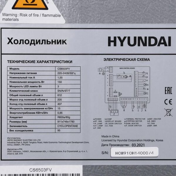 Холодильник Hyundai CS6503FV черное стекло (двухкамерный) купить в интернет-магазине TPShop.Ru. Наличный и безналичный расчет, розничные и оптовые продажи. Самовывоз, доставка по Москве и МО, отправка во все регионы России.