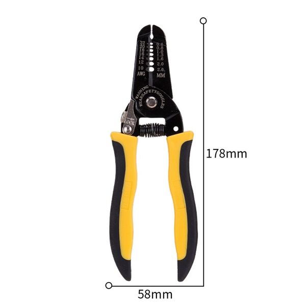 Стриппер многофункциональный Deli DL2607 0,6-2,6мм Размер: 7 дюймов. Диапазон зачистки: 0,6-2,6 мм. Лезвие из материала 50# с черной отделкой. PP+TPR погружная ручка. Пружина с автоматическим возвратом. 2 в 1 инструмент для зачистки проводов и кусачки.
