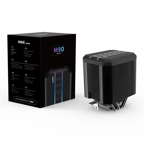 Кулер ALSEYE M90 Univerasl, TDP 180W, 4x6mm heat pipe, FAN 90mm, 800~2400rpm, 28dBA, ARGB, RTL