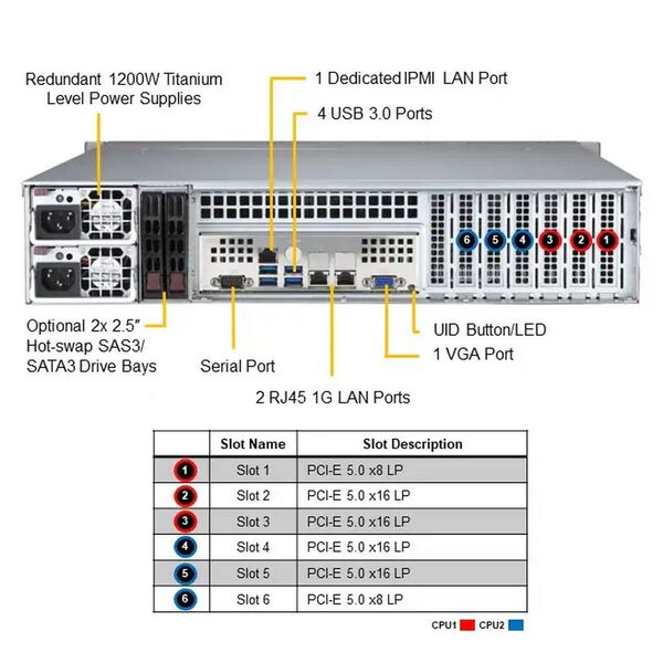 Серверная платформа Серверная платформа/ SuperServer SYS-621P-TR (X13DEI, CSE-825BTS-R1K23LPP1) (2U, LGA-4677, Intel® C741, 16xDDR5 Up to 4TB ECC RDIMM, 8x3.5" SATA3/SAS/4*NVME, Optional DVD-ROM drive, optional support: 2 fixed 2.5" SATA,SAS/SSD/HDD, 2 M.2 NVMe, 2x 1 LAN ports, 4 PCIe 5.0 x16 LP, 2 PCIe 5.0 x8 LP, 1200W Redundant Power)