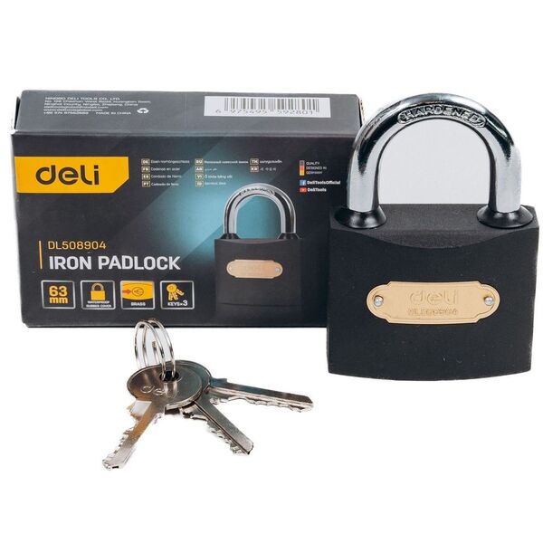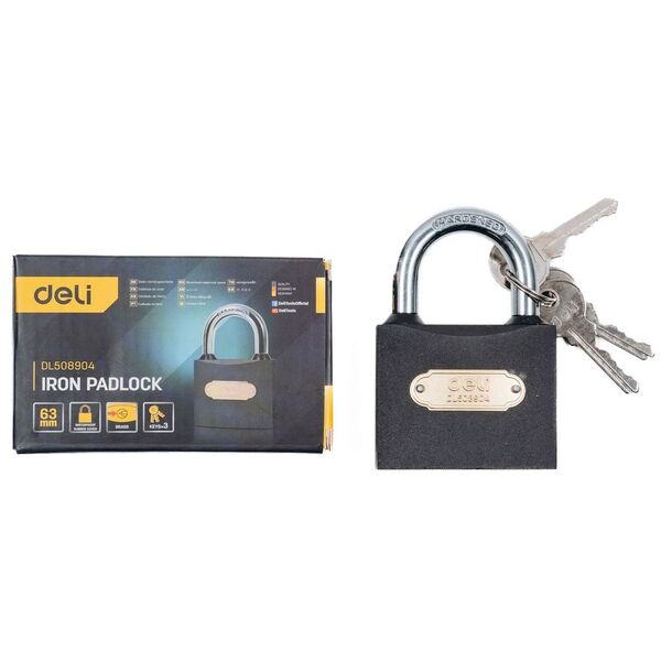 Замок навесной Deli DL508904 стальной, 63мм купить в интернет-магазине TPShop.Ru. Наличный и безналичный расчет, розничные и оптовые продажи. Самовывоз, доставка по Москве и МО, отправка во все регионы России.
