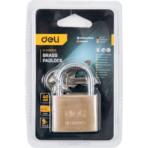 Замок навесной Deli DL508905 латунный, 40мм купить в интернет-магазине TPShop.Ru. Наличный и безналичный расчет, розничные и оптовые продажи. Самовывоз, доставка по Москве и МО, отправка во все регионы России.