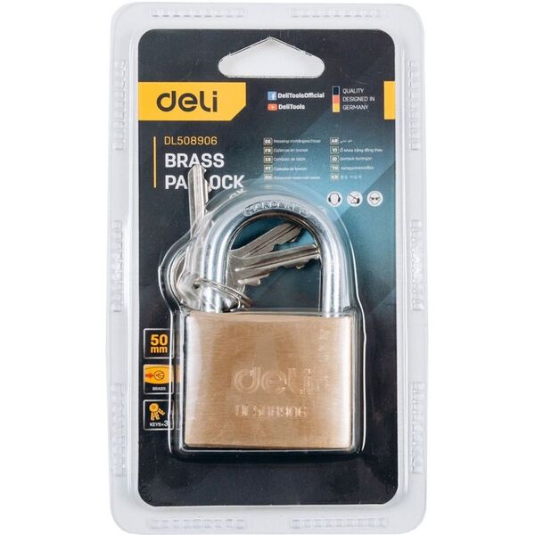 Замок навесной Deli DL508906 латунный, 50мм