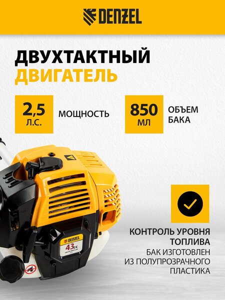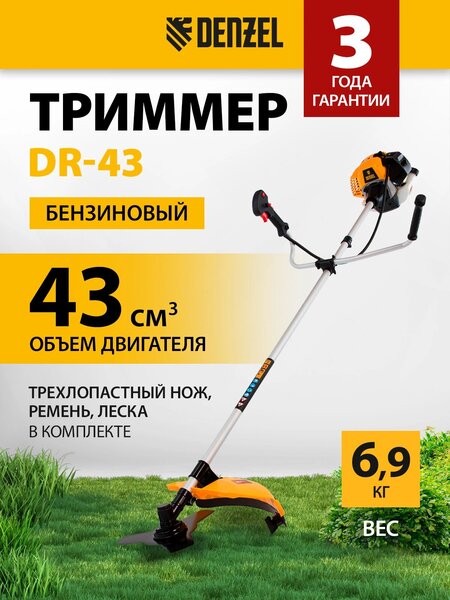 Триммер бензиновый DR-43, 43 см3, неразъемная штанга, состоит из 2 частей// Denzel купить в интернет-магазине TPShop.Ru. Наличный и безналичный расчет, розничные и оптовые продажи. Самовывоз, доставка по Москве и МО, отправка во все регионы России.