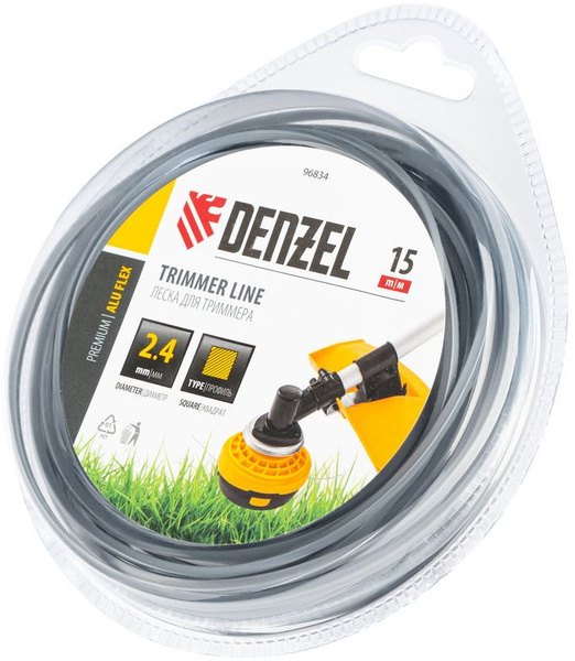 - Армированная алюминием леска для триммера Denzel ALUFLEX 96833 квадратного сечения, толщиной 2,4 мм и длиной 15 мм, в блистере, предназначена для скашивания густой травы и растений с толстыми стеблями. Отличается повышенной износостойкостью.