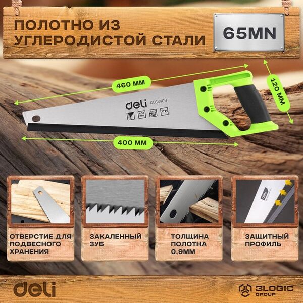 Ножовка по дереву Deli DL6840B 400мм, сталь 65Mn, шлифовка зубцов с 3-х сторон, рукоять из двухкомпонентного противоударного пластика купить в интернет-магазине TPShop.Ru. Наличный и безналичный расчет, розничные и оптовые продажи. Самовывоз, доставка по Москве и МО, отправка во все регионы России.