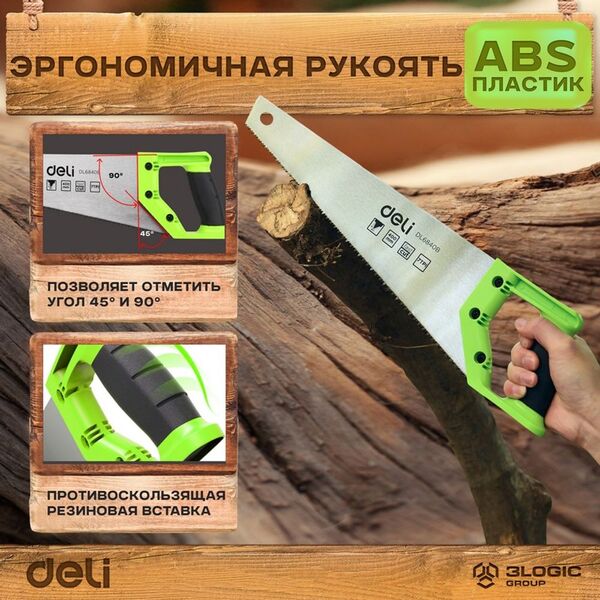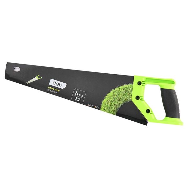Ножовка по дереву Deli DL6840B 400мм, сталь 65Mn, шлифовка зубцов с 3-х сторон, рукоять из двухкомпонентного противоударного пластика