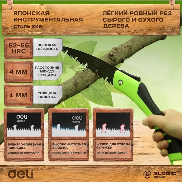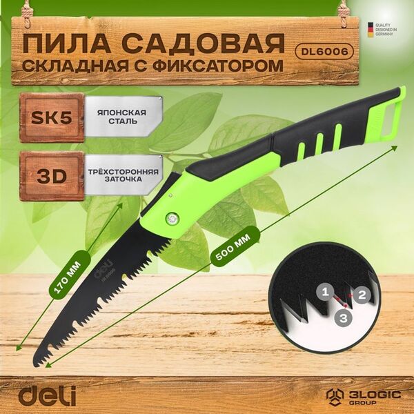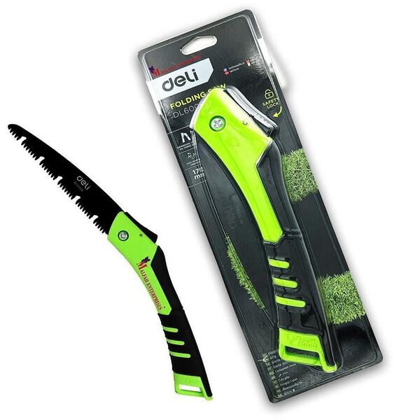 Садовая пила складная Deli DL6006 180мм, сталь 65MN, шаг зубьев 7 TPI, обрезиненая ручка, шлифовка зубов с 3-х сторон, двухрядное распределение кромок купить в интернет-магазине TPShop.Ru. Наличный и безналичный расчет, розничные и оптовые продажи. Самовывоз, доставка по Москве и МО, отправка во все регионы России.