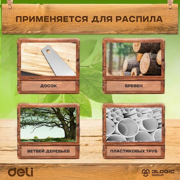 Ножовка по дереву Deli DL6850 500мм Материал: 65Mn. Термообработанная поверхность. Зубья пилы: 7 TPI. Шлифовка зубов с 2-х сторон. Литая ручка из двухкомпонентного противоударного пластика.