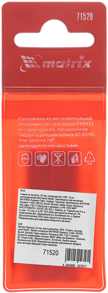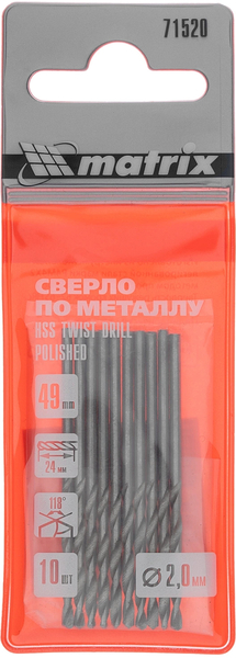 Сверло по металлу, 2,0 мм, полированное, HSS, 10 шт. цилиндрический хвостовик// Matrix купить в интернет-магазине TPShop.Ru. Наличный и безналичный расчет, розничные и оптовые продажи. Самовывоз, доставка по Москве и МО, отправка во все регионы России.