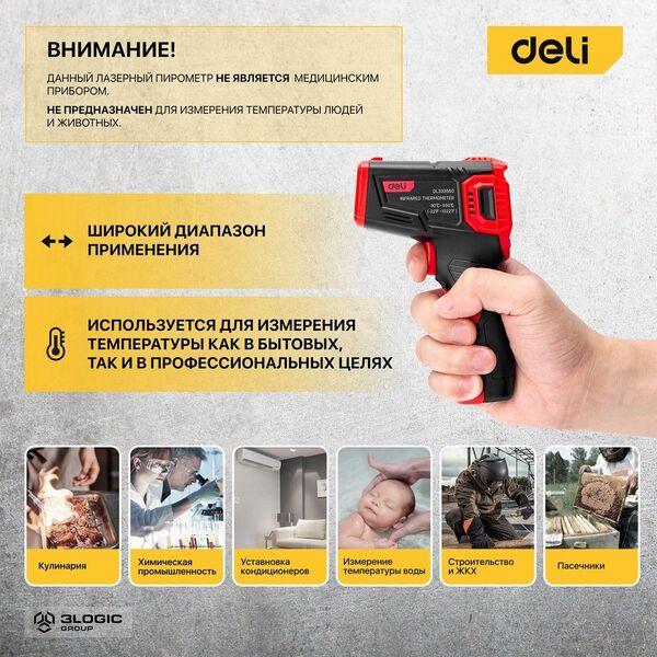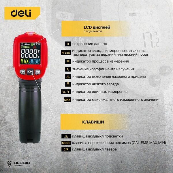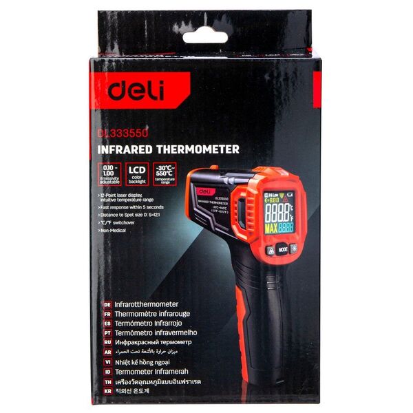 Инфракрасный пирометр (термометр) с цветным экраном Deli DL333550 купить в интернет-магазине TPShop.Ru. Наличный и безналичный расчет, розничные и оптовые продажи. Самовывоз, доставка по Москве и МО, отправка во все регионы России.