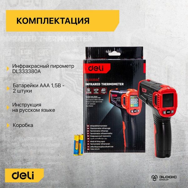 Инфракрасный пирометр (термометр) с цветным экраном Deli DL333550