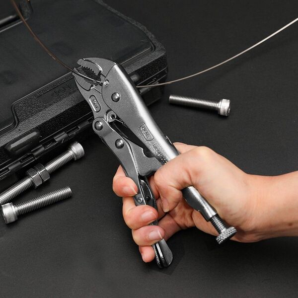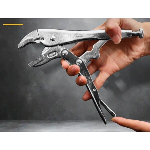 Зажимные клещи с изогнутыми губками Deli DL109107Z 180мм, рабочий ход 50мм, регулировочный винт