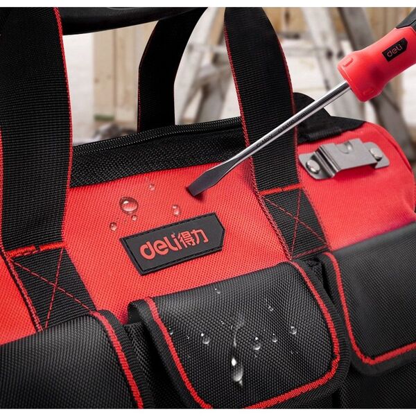 Сумка для инструментов с жестким пластиковым дном Deli DL430318 430 x 200 x 290мм, 14 карманов, плечевой ремень, ткань Оксфорд 1680D