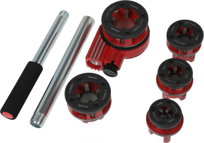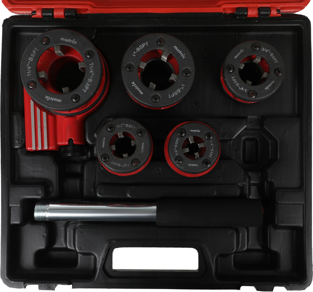 MATRIX Набор клуппов 1/4"-1/2"-3/4"-1"-1,25"+ плашкодержатель с трещоткой, 8 предм.// 77332 купить в интернет-магазине TPShop.Ru. Наличный и безналичный расчет, розничные и оптовые продажи. Самовывоз, доставка по Москве и МО, отправка во все регионы России.