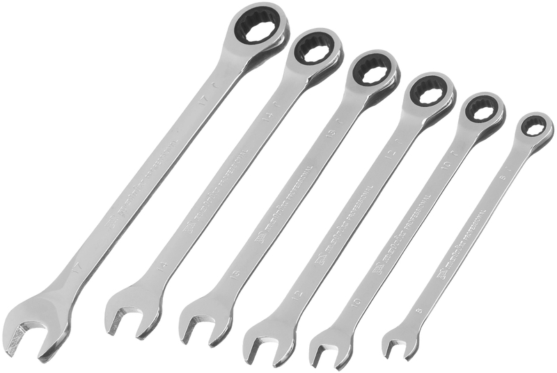 - Набор ключей комбинированных 8,10, 12, 13, 14, 17 мм., трещеточных 6 шт.
