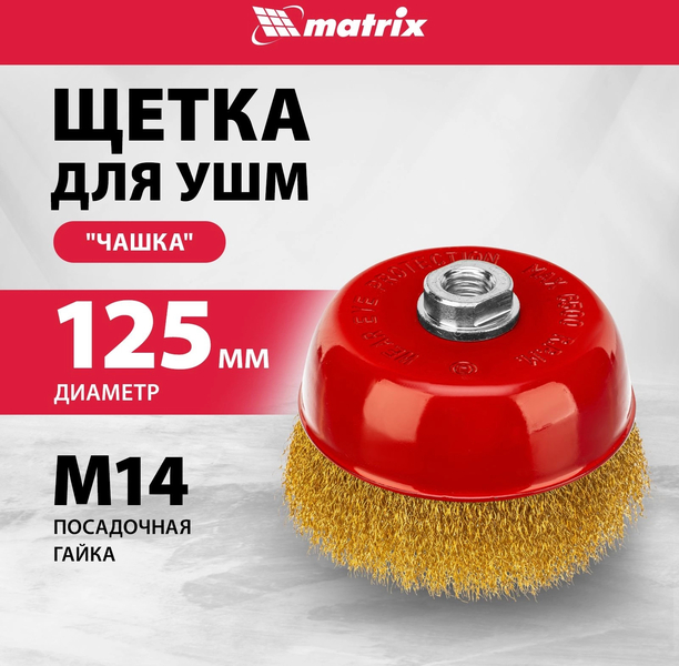 Щетка MATRIX для УШМ, 125 мм, М14, "чашка", латунированная витая проволока// 74606 купить в интернет-магазине TPShop.Ru. Наличный и безналичный расчет, розничные и оптовые продажи. Самовывоз, доставка по Москве и МО, отправка во все регионы России.