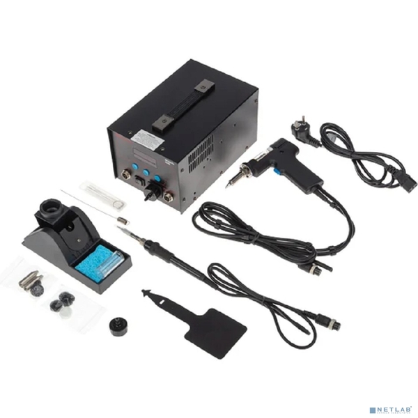 - Станция оснащена классическим паяльником и демонтажным паяльником. Оба устройства автономны и могут работать независимо друг от друга.