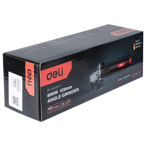 Шлифовальная машина Угловая шлифмашина сетевая Deli DE-JM125-4E (890Вт, 125мм, 12000об/мин, картон)