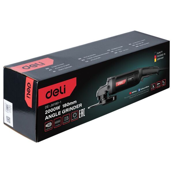 Шлифовальная машина Угловая шлифмашина сетевая Deli DE-JM180-1E (2000Вт, 180мм, 8500об/мин, картон)