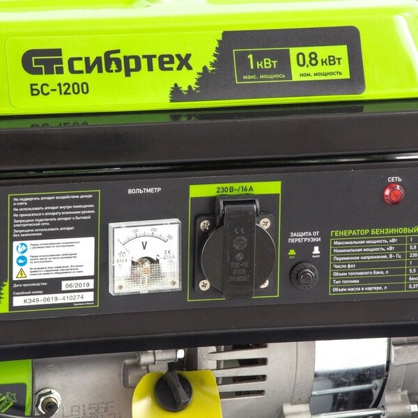 - Генератор Сибртех рассчитан на подключение одного инструмента с высоким пусковым током:дрель,перфоратор,УШМ. Блок AVR обеспечивает работу без скачков напряжения.Индикатор подключения к сети,индикатор топлива. Вольтметр. Система защиты от работы при низком уровне масла. Система воздушного охлаждения.