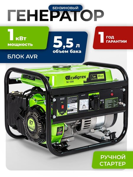 Генератор бензиновый БС-1200, 1 кВт, 230 В, 4-х такт., 5,5 л, ручной стартер// Сибртех купить в интернет-магазине TPShop.Ru. Наличный и безналичный расчет, розничные и оптовые продажи. Самовывоз, доставка по Москве и МО, отправка во все регионы России.