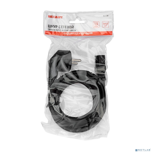 Шнур сетевой, евровилка угловая - евроразъем С13, кабель 3x1,5 мм², длина 1,5 метра, черный (PVC пакет) REXANT купить в интернет-магазине TPShop.Ru. Наличный и безналичный расчет, розничные и оптовые продажи. Самовывоз, доставка по Москве и МО, отправка во все регионы России.