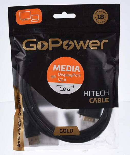 Кабель GoPower DisplayPort (m)-VGA (m) 1.8м ПВХ черный (1/100) купить в интернет-магазине TPShop.Ru. Наличный и безналичный расчет, розничные и оптовые продажи. Самовывоз, доставка по Москве и МО, отправка во все регионы России.