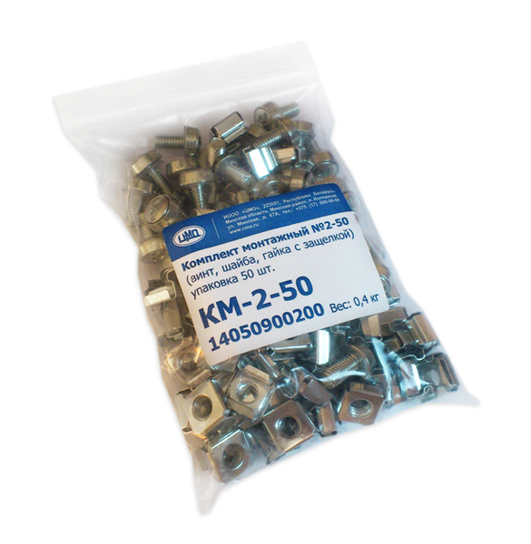 - Комплект монтажный № 2 (винт, шайба, гайка с защелкой), упаковка 50 шт.