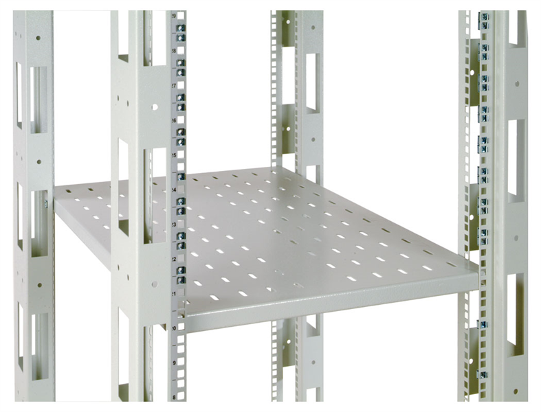 - Имеет четыре точки фиксации к вертикальным направляющим шкафов и открытых стоек