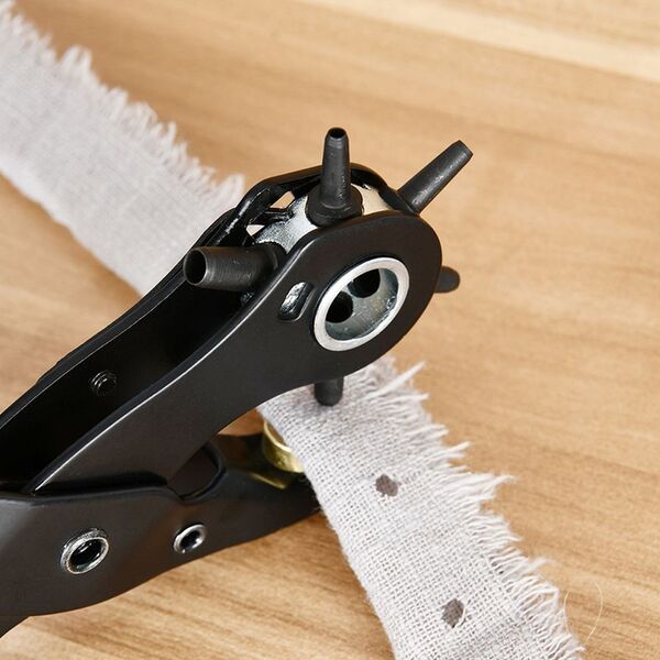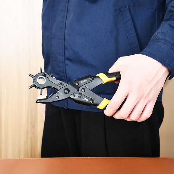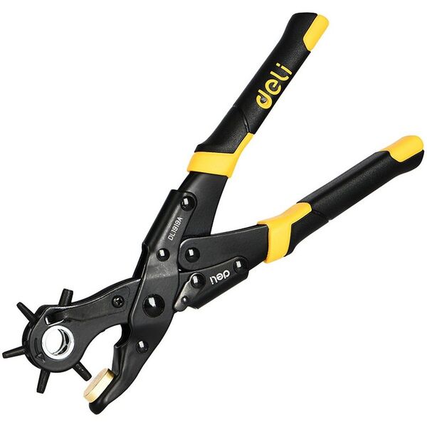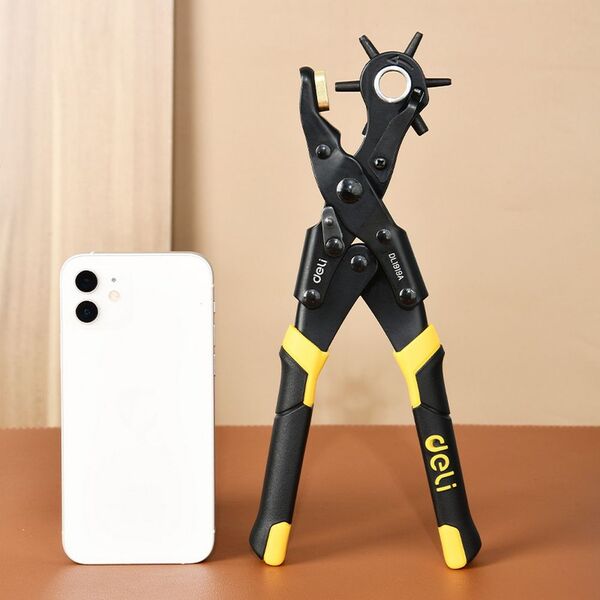 Револьверный дырокол для кожи 6-в-1 двухрычажный Deli DL1919A 225мм, диаметр пуансона: 2, 2,5, 3, 3,5, 4, 4,5мм, сталь Cr-V