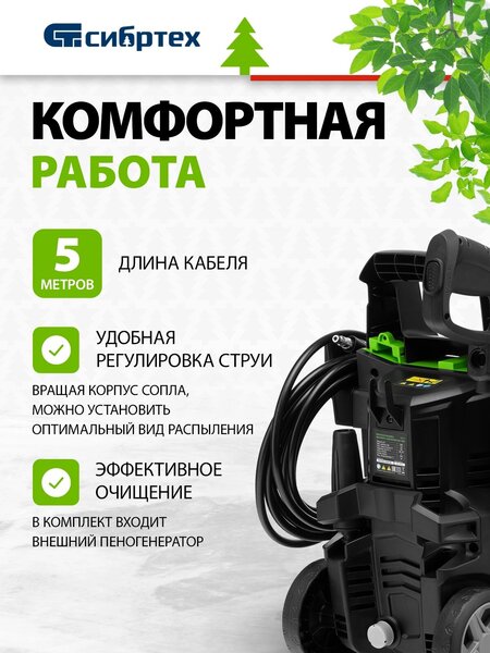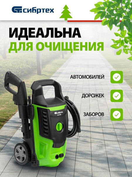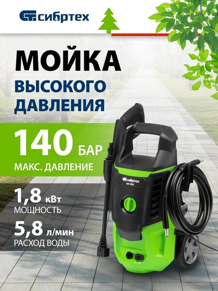 Моечная машина высокого давления АМ-1800, 1800 Вт, 140 бар, 350 л/ч, колесная// Сибртех