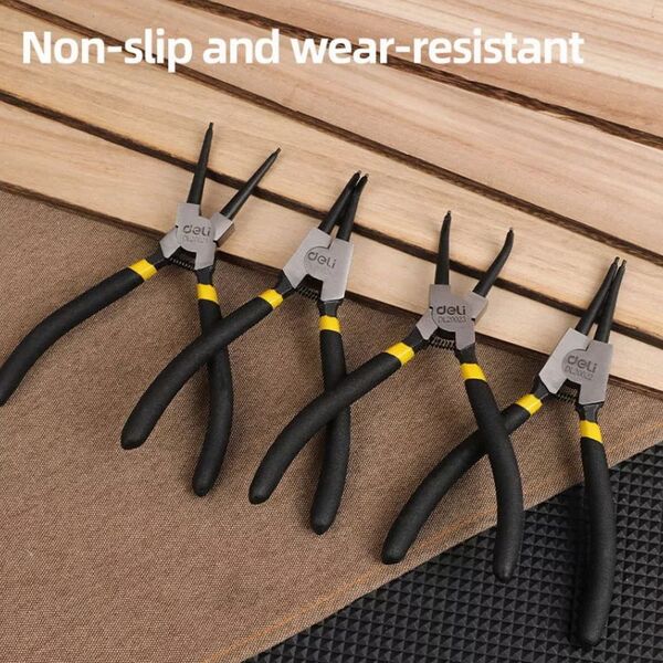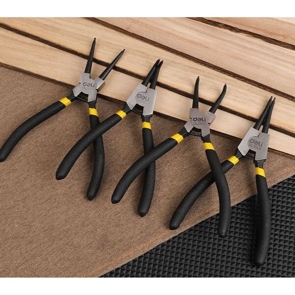 Набор из 4-х съемников стопорных колец Deli DL20521-4 175мм, сталь HRC50-54, прорезиненная рукоять, блистер