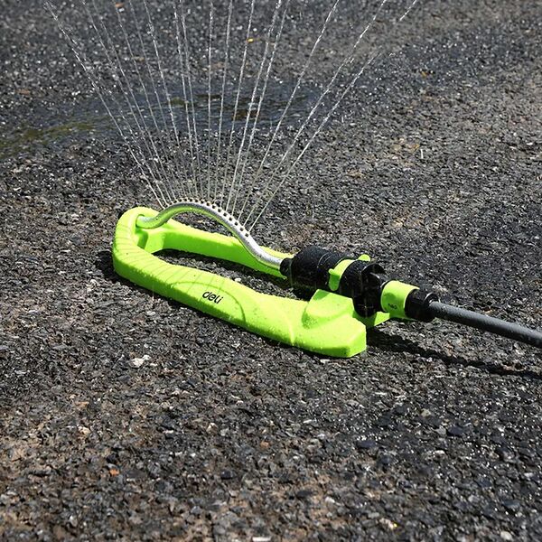 Дождеватель-разбрызгиватель осциллирующий веерный Deli DL581303 17 латунных сопел, площадь орошения до 350кв.м, плавная регулировка расстояния распыления, диаметр шланга 3/4";, корпус из ударопрочного пластика купить в интернет-магазине TPShop.Ru. Наличный и безналичный расчет, розничные и оптовые продажи. Самовывоз, доставка по Москве и МО, отправка во все регионы России.