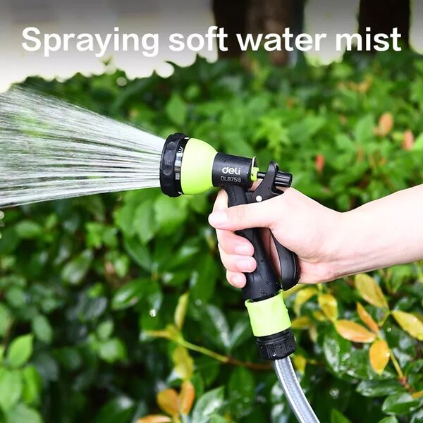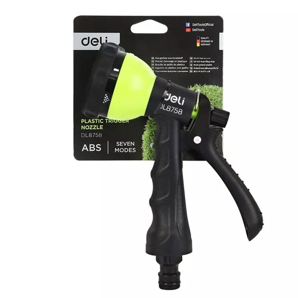 Пистолет-распылитель поливочный Deli DL8758 7 режимов распыления, диаметр шланга 3/4";, пластиковый корпус
