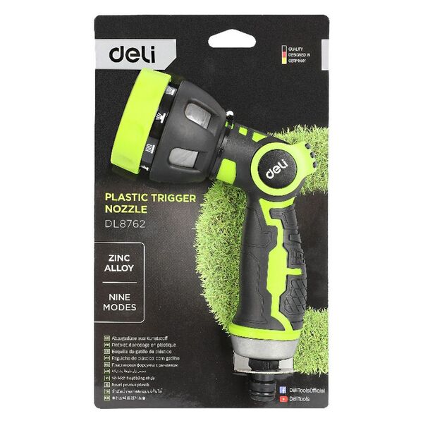 Пистолет-распылитель поливочный бескурковый Deli DL8762 9 режимов распыления, диаметр шланга 3/4";, прорезиненная рукоять, корпус из цинкового сплава купить в интернет-магазине TPShop.Ru. Наличный и безналичный расчет, розничные и оптовые продажи. Самовывоз, доставка по Москве и МО, отправка во все регионы России.