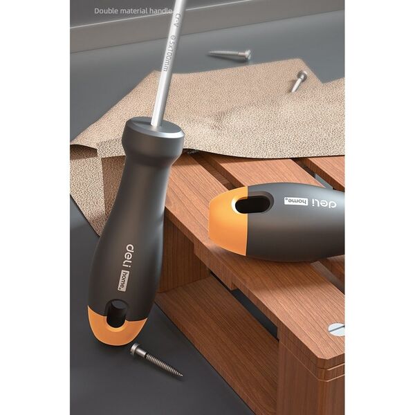 Набор отверток "Home Series Gray" Deli HT1002C 2шт SL5x100+PH1x100, эксклюзивный дизайн, рукоятка из высококачественного софттач пластика