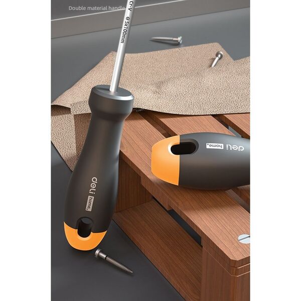 Шлицевая отвёртка "Home Series Gray" Deli HT1105C 5x100мм Эксклюзивный дизайн, рукоятка из высококачественного софттач пластика
