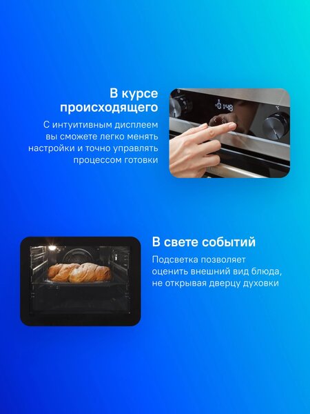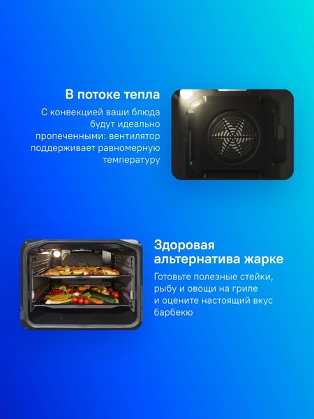 - Быстрый нагрев духовки, Классический нагрев (снизу + сверху) + работа вентилятора, Классический нагрев (снизу + сверху), Большой гриль + работа вентилятора, Большой гриль,Пицца, FrozenBake: приготовление замороженных блюд, Размораживание, Очистка паром AquaClean