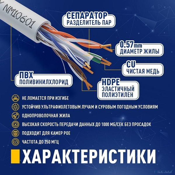 Кабель NEOMAX UTP, 4 пары, Категория 6, 305 м. купить в интернет-магазине TPShop.Ru. Наличный и безналичный расчет, розничные и оптовые продажи. Самовывоз, доставка по Москве и МО, отправка во все регионы России.