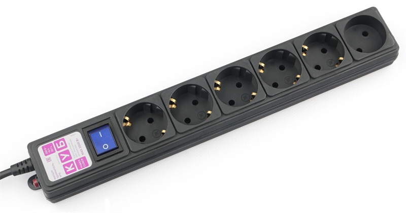 - Power Cube сетевой фильтр, 1,9 метра, 6 розеток (5 с заземлением + 1 без заземления), 16А/3,5кВт, cечение провода: 3х1мм2, цвет черный, гарантия 4 года, производство РФ, МПТ