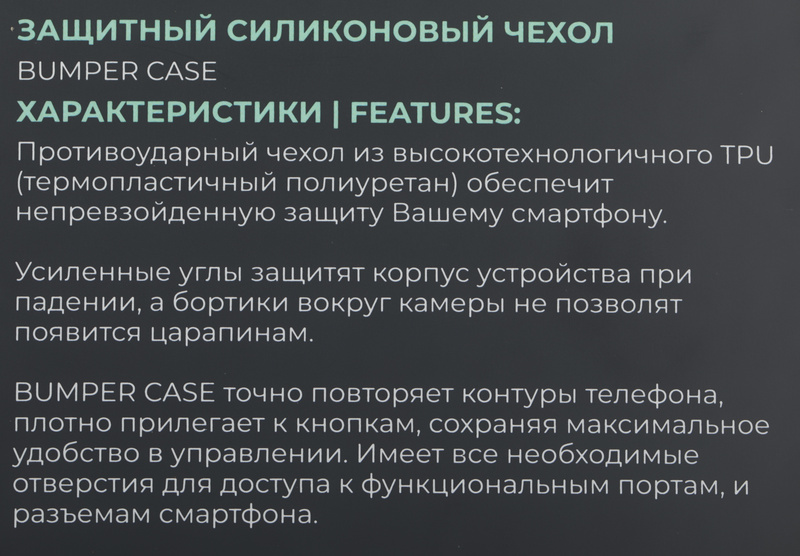- Прозрачный противоударный силиконовый чехол Bumper Case c усиленными углами и защитным бортом надёжно защитит корпус Вашего устройства от царапин, грязи и механических повреждений. Имеет все необходимые отверстия для доступа к функциональным портам и разъемам.