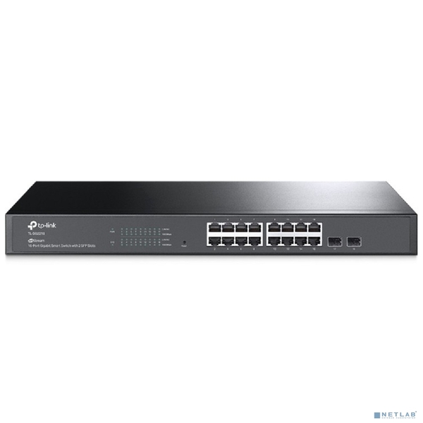 TP-Link SG2218, JetStream Smart коммутатор на 16 гиг. портов и 2 гигабитных uplink-порта, 16 портов RJ-45 10/100/1000 Мбит/с, 2 гигабитных SFP-слота, функции L2/L2+, возможность монтажа в стойку
