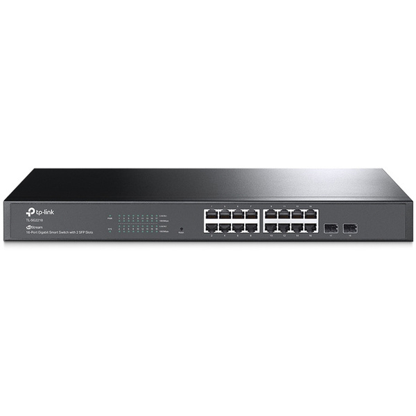 TP-Link SG2218, JetStream Smart коммутатор на 16 гиг. портов и 2 гигабитных uplink-порта, 16 портов RJ-45 10/100/1000 Мбит/с, 2 гигабитных SFP-слота, функции L2/L2+, возможность монтажа в стойку купить в интернет-магазине TPShop.Ru. Наличный и безналичный расчет, розничные и оптовые продажи. Самовывоз, доставка по Москве и МО, отправка во все регионы России.