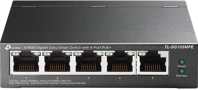 TP-Link TL-SG105MPE, Коммутатор Easy Smart с 5 гигабитными портами (4 порта PoE+), 802.3af/at, бюджет PoE — 120 Вт, стальной корпус