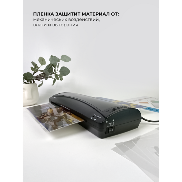 Ламинатор ГЕЛЕОС ЛМ A3 Комбо+, А3, 2х150 (пленка 75-150мкм), 300 мм/мин, 2 вала, пласт. корпус, мах толщина 0,6мм, разжим валов, + резак, обрезчик углов и стартовый набор пленок