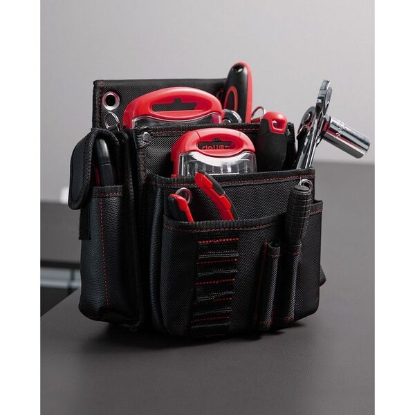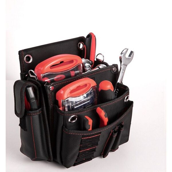 Ящики, сумки для инструментов Deli Поясная сумка монтажника Deli DL5865 250 x 250 x 110мм, 7 карманов, ткань Оксфорд 1680D, кожанные боковые карманы